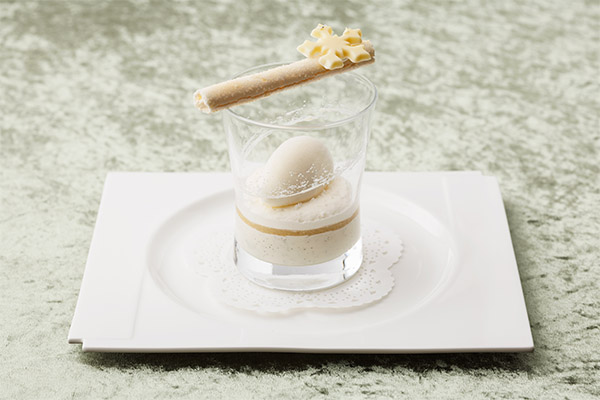 デザートはホワイトクリスマスをイメージした、ふわふわとした雪のようなくちどけのデザートをご用意しております。