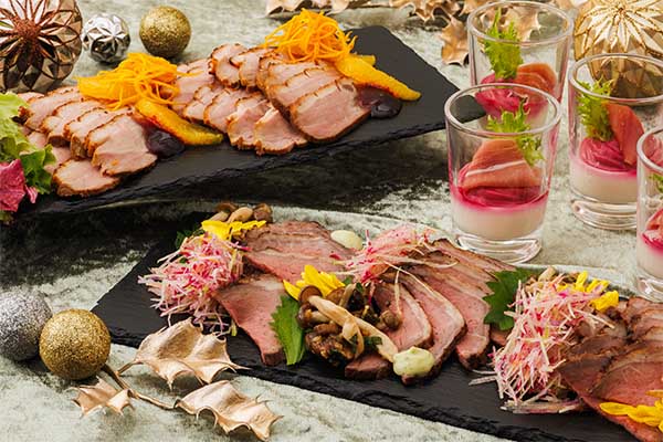 TENQOO定番の「前菜&サラダビュッフェ」に、冷製ローストビーフや合鴨のオードブルが並ぶクリスマス限定メニューです。