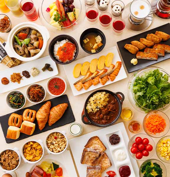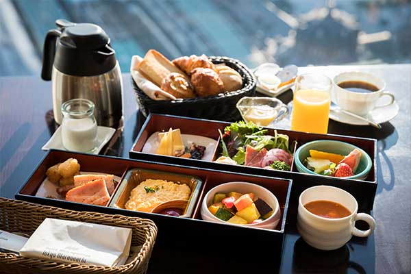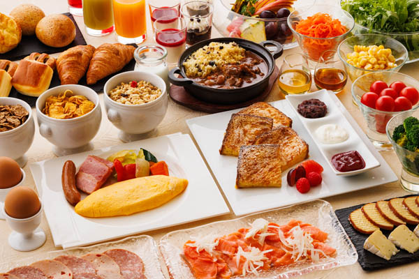 | ご案内 | ※おかげさまで多くのお客さまにご利用いただき、平日 7:00~8:00、週末 8:00~9:00の時間帯は大変込み合います。誠に勝手ながらお時間に余裕をもってお越しくださいますようお願い申し上げます。 ※宿泊プランに含まれる朝食は、レストラン店内でのご提供となります。ルームサービスへのお振替はいたしかねます。 |