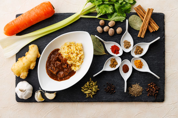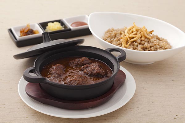 オリジナルブレンドの特製ガラムマサラを使用。玉ねぎ・マンゴーチャツネのフルーティーな甘み、後味にピリッとしたスパイスの奥深い味わいと牛などの旨味がたっぷり入ったカレーです。
