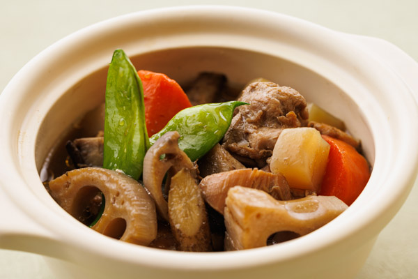 丁寧に出汁から引いた本格的な筑前煮。さっぱりとしながら滋味深い一品です。