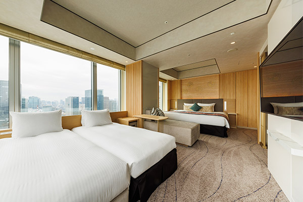 開放的な2面窓からはホテルの一番の特徴である、東京駅を一望するダイナミックな眺望をお楽しみいただけます。