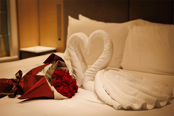 電車の見えるお部屋が確約のトレインビュールームプラン。プラン特典として、鉄道ファンの方はもちろんお子様にもうれしい電車柄のオリジナル手ぬぐいをプレゼントいたします。