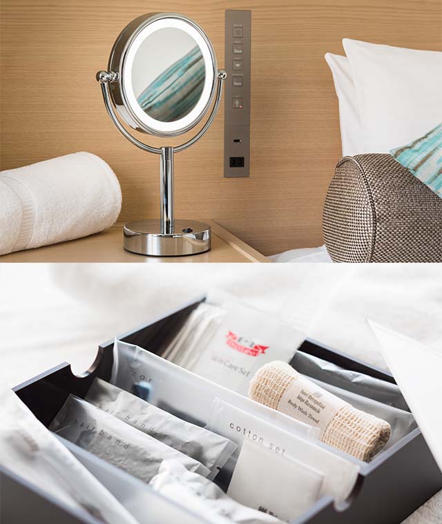 | 室内設備 | シモンズ社製ベッド、スマートTV(動画配信サービス対応)、無料インターネット接続(Wi-Fi)、加湿空気清浄機、湯沸し電気ケトル、ドライヤー、パジャマ、セーフティーボックス、スタンド式ミラー、消臭スプレー、洋服ブラシ、シューシャインペーパー |