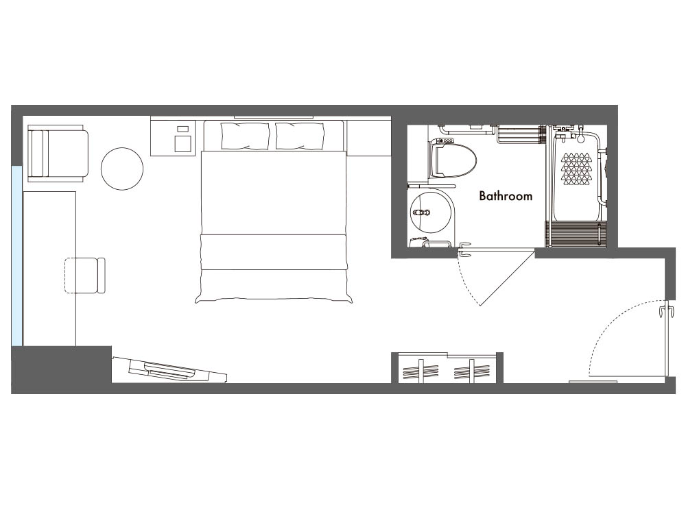 | 室内設備 | シモンズ社製ベッド、電動開閉式シェード、スマートTV(動画配信サービス対応)、無料インターネット接続(Wi-Fi)、加湿空気清浄機、湯沸し電気ケトル、ドライヤー、パジャマ、セーフティーボックス、スタンド式ミラー、消臭スプレー、洋服ブラシ、シューシャインペーパー |