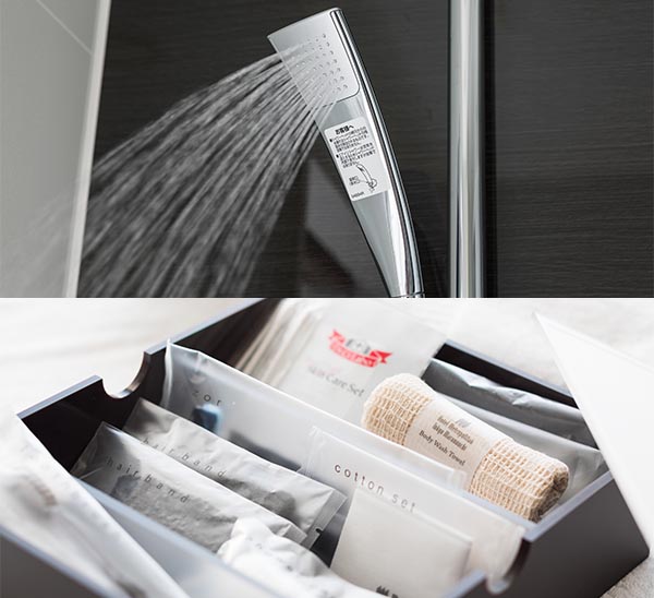 | アメニティ | シャンプー、リンス、ボディーソープ、ハンドソープ、歯ブラシ、マウスウォッシュ、コットン、綿棒、ヘアバンド、基礎化粧品セット、ヘアブラシ、ボディタオル、シェーバー、入浴剤、ドリップ式コーヒー、緑茶パック、ミネラルウォーターお一人様1本 |